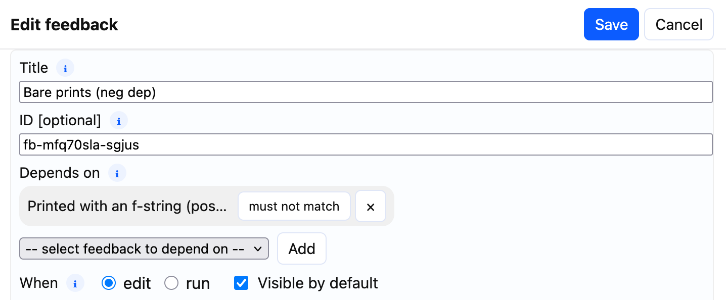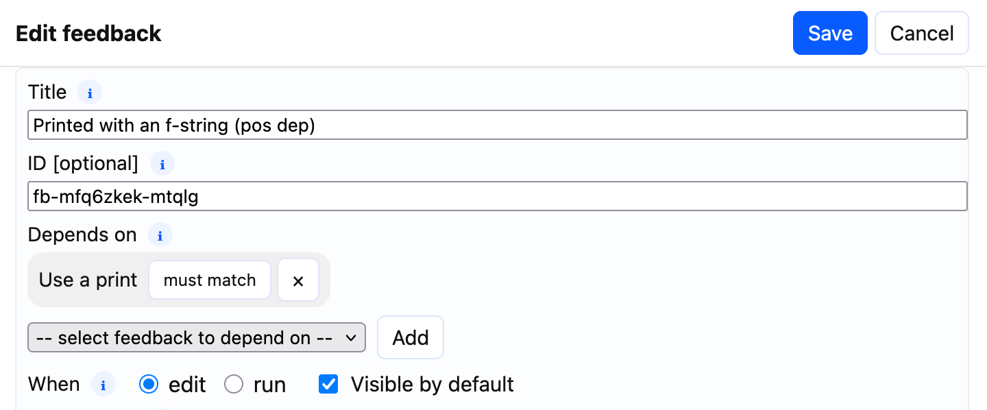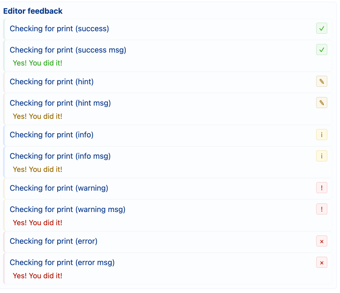 I love feedback flexibility, and from personal experience it’s frustrating when the ability to give feedback is limited by the tools you have to provide it. One of the features I added to testing that made me pretty happy was conditional runs for tests and grouping.